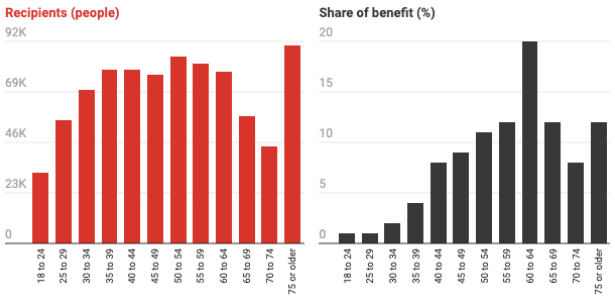 The benefits flow to the wealthy and people over 60