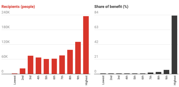 Around 83% of the benefit went to those earning the largest incomes.